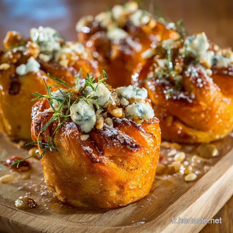 Cette brioche butternut et roquefort est bien plus qu'un simple pain; c'est une véritable pièce maîtresse visuelle grâce à sa forme torsadée et ses couches visibles.