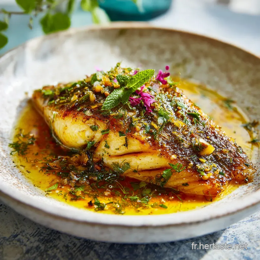 Ajoute quelques grains de fleur de sel au dernier moment. Ils vont scintiller sous la lumière et apporter ce petit "kick" salin indispensable. Une branche de thym frais, non brûlée, posée à côté du filet, rappellera les arômes de la cuisson.