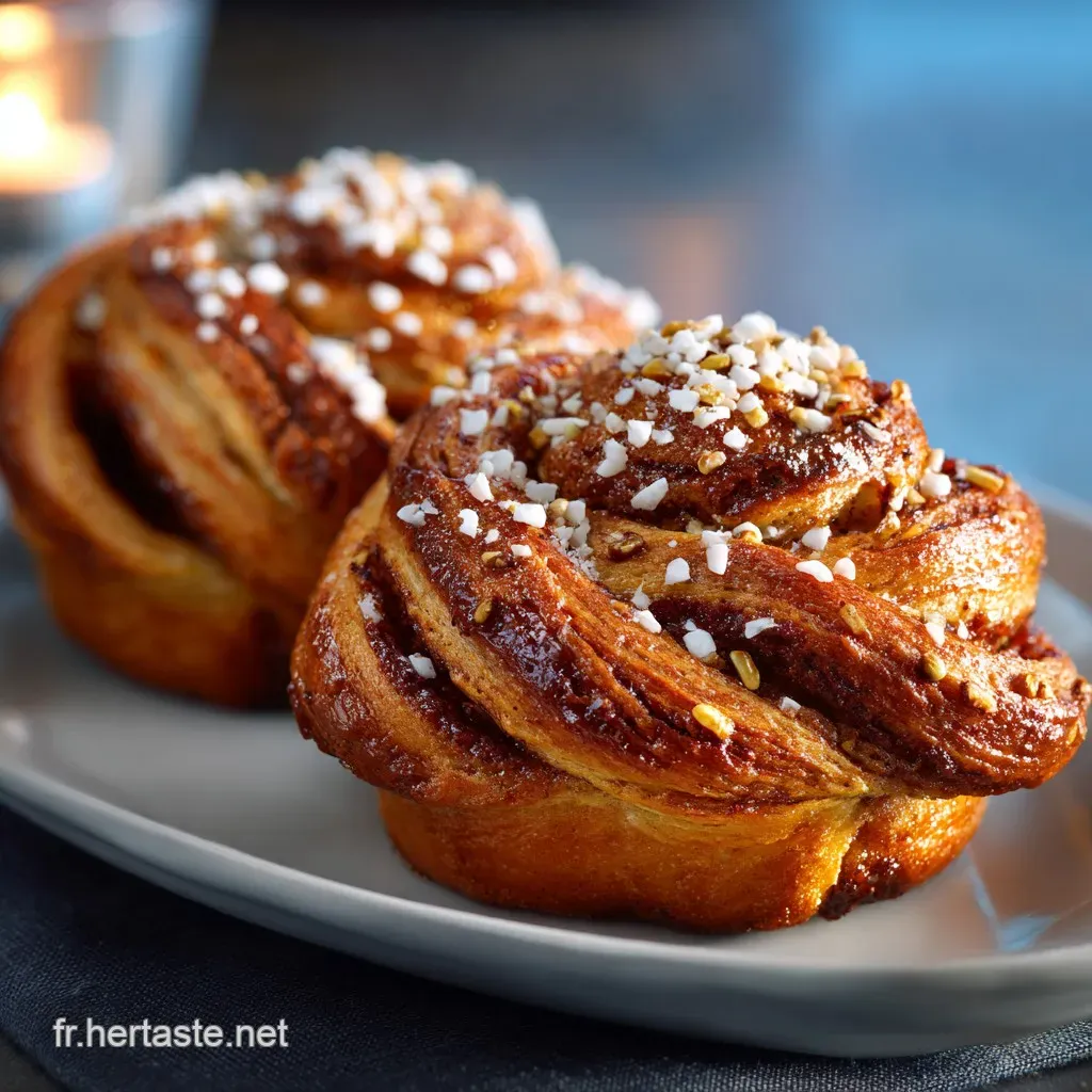 Bien que la Kanelbullar recette originale soit à la cardamome et cannelle, la pâtisserie nordique est riche en variations saisonnières. Par exemple, en période de Noël, le roulé peut incorporer du safran infusé dans le lait, ce qui lui donne une magnifique couleur dorée et un parfum distinctif.