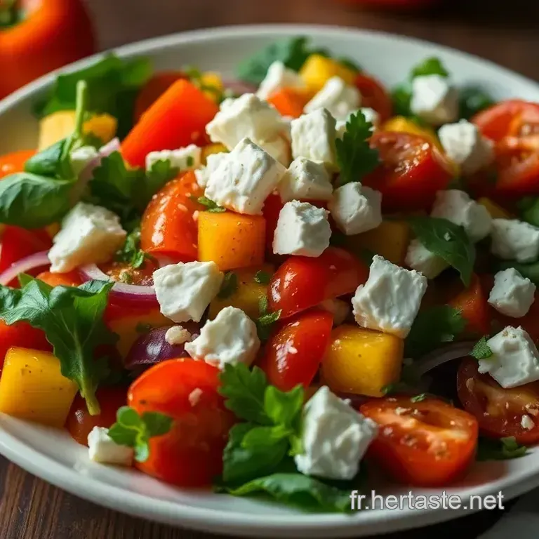 Côté nutrition, le mélange de légumes frais vous apporte une bonne dose de vitamines. cette salade est non seulement très colorée, mais aussi légère et croquante, idéal pour les jours chauds.