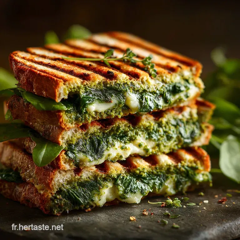 C'est simple : la texture. On a le croustillant du pain, grâce au pressage. On a l'onctuosité de la garniture fondue. Et on a cette explosion de saveur avec le pesto maison épinards . Ce n’est pas un simple assemblage de restes.