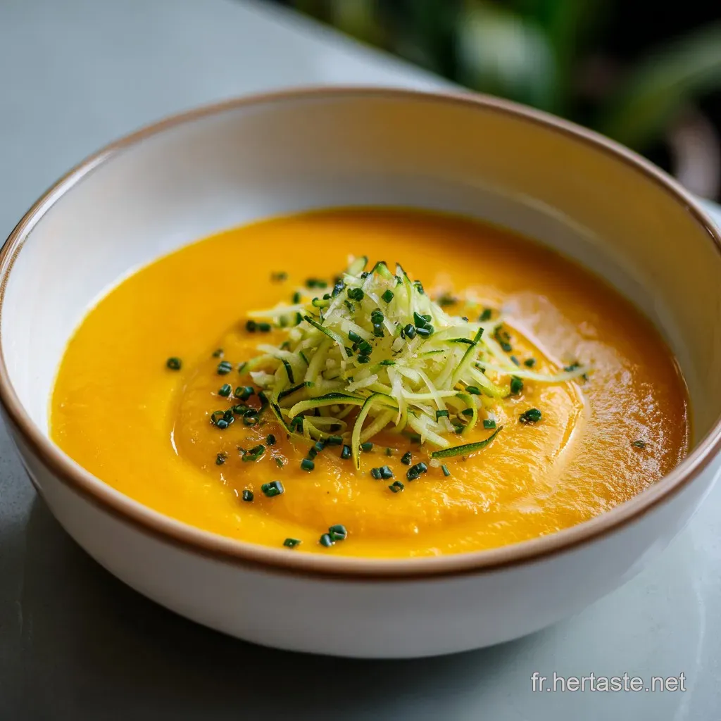 La Pectine Structurelle : Les courgettes et les carottes contiennent des fibres solubles qui, une fois mixées à haute vitesse, créent un réseau stable emprisonnant l'eau, donnant cet aspect velouté sans ajout de féculents.