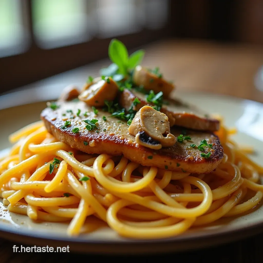 Ah, magnifique ! Les spaghettis au poulet et aux champignons, un classique réconfortant qui sent bon la cuisine familiale française et italienne réunies. C’est un plat qui plaît à tous, des petits gourmands aux palais plus exigeants.
