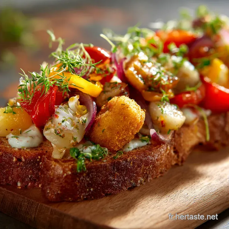 Cette tartine aux légumes et nuggets n'est pas une simple superposition d'ingrédients. C’est un travail d'équilibre. On est dans la cuisine de bistrot revisitée, où le rustique rencontre le fun. Le but ?